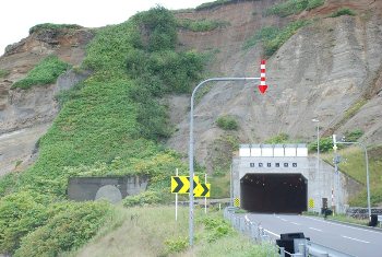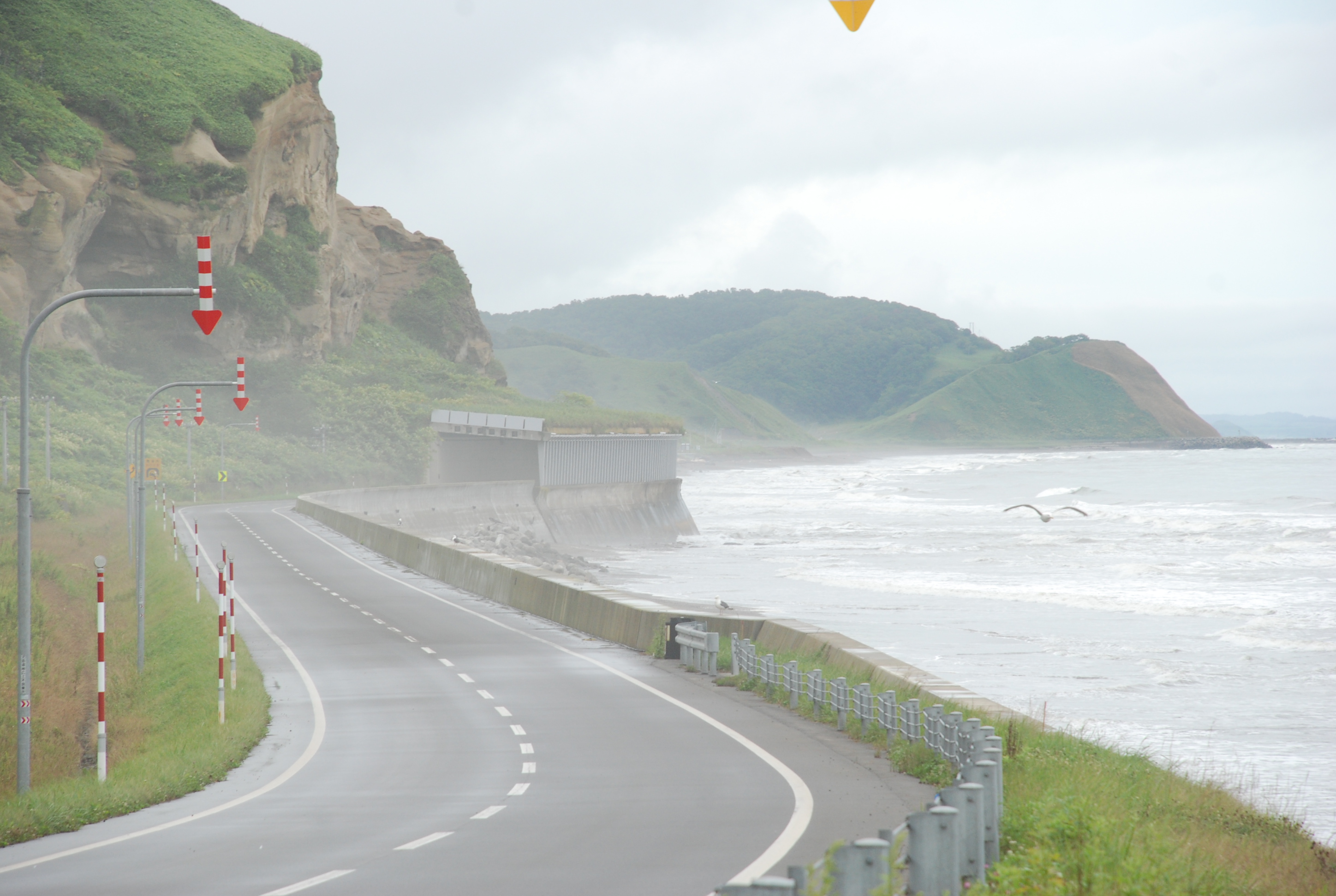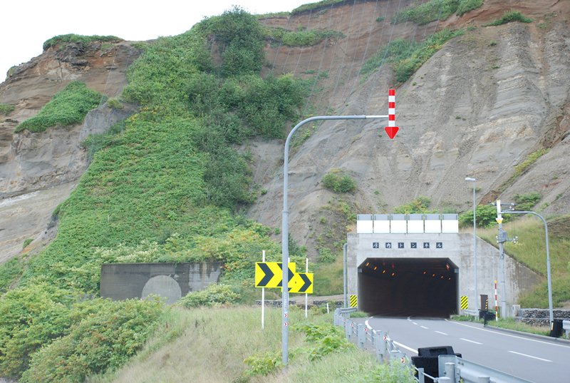 5時30分、変な寒気を感じ起床。 車内の金属部が結露する程度の気温差。 関東では、まだ猛暑日でばてているはずだが、流石亜寒帯の夏は違う。 1時間後にかなどら氏も起床し、カロリーメイトを朝食とする。 準備や、目標を決めているうちに8時を過ぎそうだったので出発。 ![]() 8:05 - 道道55号 広尾郡大樹町内 (←向こうまでずっと直線、道中何度見ても飽きなかった) 市街の外れにあるホクレンで燃料を入れ、再び海沿いのR336を目指して走る。 実は、朝食を食べたあたりから腹痛が。 変に冷えたか何かしたか・・・? ![]() 8:10 - 道道55号 広尾郡大樹町内 (←芽武集落のR336とr55の交点、クリックで拡大) 牧草地帯を10km弱走り、r55の終点でR336との交点の芽武集落へ。 ここの信号を左折します。 ![]() 8:10 - 国道336号 広尾郡大樹町内 (←第一の目的地、釧路まで125km) そして、R336に復帰。 一路釧路を目指します。 相変わらず、腹痛が波状攻撃を仕掛けてきます。 ![]() 8:35 - 国道336号 広尾郡大樹町内 (←別名 ナウマン国道、クリックで拡大) しばらくは交通量の少ない森の中を走っていきます。 時々集落がある程度で、ここら辺はほぼ森です。 ![]() 8:55 - 国道336号 中川郡豊頃町内 (←天気悪いですが十勝川を渡ります) 北海道を代表する河川、十勝川を渡ります。 92年ごろまでは国道指定の上、渡船が行われていたらしいです。 が、この橋の開通で廃止となっています。 ![]() 9:00 - 国道336号 十勝郡浦幌町内 十勝河口橋 (←立派な親柱(?)) 名は十勝河口橋、全長は928m。開通は92年12月8日。 名前の通り、十勝川の最下流にある橋です。 ![]() 9:02 - 国道336号 十勝郡浦幌町内 十勝河口橋 (←きれいな弧を描く) 全長のうち、半分以上は河川敷の部分を跨いでいます。 しかしながら、その堂々とした姿は、立派と言えましょう。 ![]() 9:05 - 国道336号 十勝郡浦幌町内 十勝河口橋 (←何故跳んだし) 折角なのでカントリーサインと記念撮影でも。かなどら氏が橋の中心へ走っているうちに。 ・・・いろいろとツッコみたい気持ちはわかります、ハイ。 (上に着ているのは高校のジャージだし、そもそもなぜ跳んでいるのか・・・) ![]() 9:10 - 国道336号 十勝郡浦幌町内 (←十勝平野に広がる牧草地) 十勝平野をさらに東へ。 日本有数の穀倉地帯を突き進みます。 ![]() 9:20 - 国道336号 十勝郡浦幌町内 (←十勝平野に広がる牧草地) 十勝川を渡りほどなくするち分岐が現れます。 字トイトツキでR38方面と海沿い方面へ分岐。 自分たちはこのまま海沿い方面を進みます。 ちなみにこの先は、その手の人たちには有名な区間、楽しみです。 ![]() 9:25 - 国道336号 十勝郡浦幌町内 (←不穏な標識が・・・(爆 、クリックで拡大) しばらく進み、丘に登ると、すぐにこんな標識が。 「この先300m先 国道管理区間終わり」 とうとうきました。 ![]() 9:25 - 国道336号 十勝郡浦幌町内 (←延伸工事も進んではいるようです) 国道はここで終わりですが、右にそれると有名なダート道が。 ここが、昆布刈石のダート道の入口です。 国道の延伸工事がされているそうなので、ダート道はここまで年々短くなっているそうです。 詳しいことは、先人たちがレポートを公開されているので、探してみるといいでしょう。 ![]() 9:26 - 町道昆布刈石海岸線 十勝郡浦幌町内 (←十数年前はそれは綺麗な道だったと言います) 将来、R336が昆布刈石方面へ延伸され、r1038とつながった際には通れなくなることも予想されますので、行くならお早めに。 また、r1038がR336に昇格されるという話もあるそうです。 となると、R38だった時代から数十年の時を経ての再昇格ですな。 ![]() 9:30 - 町道昆布刈石海岸線 十勝郡浦幌町内 (←重機が目立つ、クリックで拡大) R336の新道は、大体の整地は終わっているようで、GoogleMapを見てもその道筋となる線がしっかりと見てとれます。(参考画像) ![]() 9:35 - 町道昆布刈石海岸線 十勝郡浦幌町内 昆布刈石展望台 (←あれがかの有名な厚内トンネル、クリックで拡大) 昆布刈石展望台と名のついた場所に到着。 道道方面を見ると、新旧の厚内トンネルが見えます。 旧隧道のほうは、案の定コンクリで閉塞されてしまっているようです。(隧道付近を拡大) ![]() 9:36 - 町道昆布刈石海岸線 十勝郡浦幌町内 昆布刈石展望台 (←路端に立っているだけ) 一応、こんな感じで看板も設置してあります。 記念写真も撮りましたが、ここでは割愛。 ![]() 9:43 - 町道昆布刈石海岸線 十勝郡浦幌町内 道道1038号交点 (←ダート道終了) 町道の終点です。(終点と言いましたが、どちら側が起点かわからないので便宜上、です。) 左方向は霧止峠・終点の浦幌町共栄方面。右方向が厚内トンネル・起点の浦幌町直別方面。 今日は右折します。 ![]() 9:46 - 道道1038号 十勝郡浦幌町内 厚内トンネル (←隧道のコンクリ詰めは、道中何度も目にすることに。クリックで拡大) 左が言うまでもなく旧隧道、右が2008年に開通した新隧道です。 1車線幅で、もちろんすれ違いはできない、そんな不便さがまたいい隧道だったそうです。 ![]